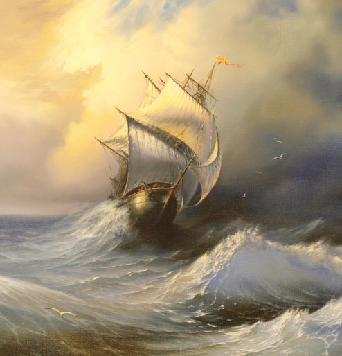 Let us again imagine what such a voyage might have been like. We must remember that the family is traveling with Conrad, rather elderly-for-the-time at age fifty-eight. Also with them are perhaps at least five children under the age of nine. Those are Wilhelm and Catharine's four boys and the child Elisabeth Brown traveling with Conrad and his wife Anna Maria. Catharine is either pregnant or has an infant girl. Try imagining that you are one of our folks on this treacherous trans-Atlantic journey.