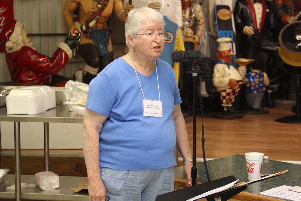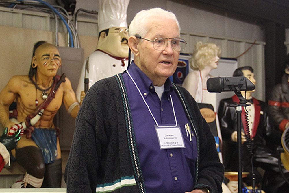 A few miles down the road in Troutman, we had lunch at Holy Trinity Lutheran Church, the home church of many Lippards through the years. Following that, Harriet presented our genealogy session with the assistance of Norbert Schroeder, Seth, Carl Lippard, Bill Lippard, and Bob Lippard. Gary followed with more fascinating historical information about the area, and Patricia Beck talked about her branch of the family who remained near the Lippards' original farms in Cabarrus County. Although out of chronological order but recognizing that we were beginning to lose our "Greatest Generation," Sunday evening we honored our relatives who participated in World War II either as military veterans or as civilians on the home front. Some of the cousins shared with us their or their close family's personal experiences. Seth and Jon again led us in singing, this time popular songs of the World War II era.