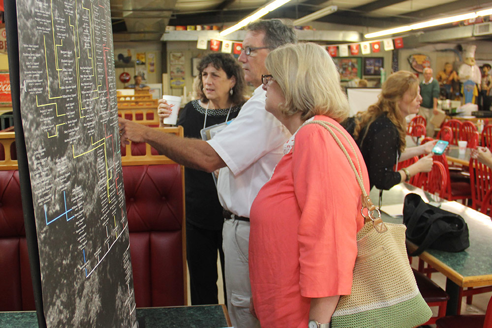 In August we held a one-day reunion at Randy's Party House with Randy's Barbecue Restaurant staff serving us a typical regional barbecue buffet. We had hoped to attract a dozen or two local Lippards to hear new information Gary and I had discovered over the last few years. To our surprise we had 53 attendees from both the local area and as far away as Massachusetts and New Mexico. We discussed my experiences in researching our Lippard family in the days before computers with contributions of information from my older close North Carolina and Pennsylvania Lippard relatives, and others both near and far, searching in the various Washington, DC, area (where I was living) research facilities to which I had access such as the Library of Congress, the National Archives, the DAR Library, and the local LDS (Mormon) genealogy library, and the University of Maryland libraries. I shared the discovery of Conrad and many of his immediate family's baptismal, confirmation, and marriage records in Mittelhof-Gensungen, Hesse, Germany; Conrad's life in Germany; the problems of migration to Pennsylvania; and Conrad's life and death in Pennsylvania. Gary discussed our Lippard's arrival in Philadelphia and early experiences there including Wilhelm's eventual decision to move his family south to North Carolina, including surprising and shocking events that have never been passed down through the family. Amy and Ernest Lepperd helped us with set-up of furniture and displays and registration including name tag and information packets.